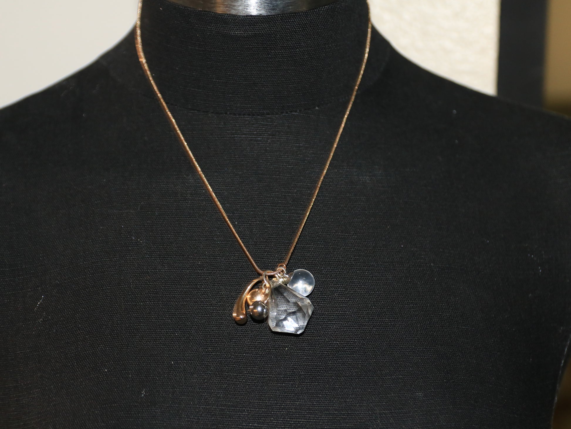 Crystal Keepsake Necklace is full of collected keepsake charms that Sam brought together to give a home, because let's face it they all belong together. This necklace will definitely catch peoples eye and reflect from every angle.