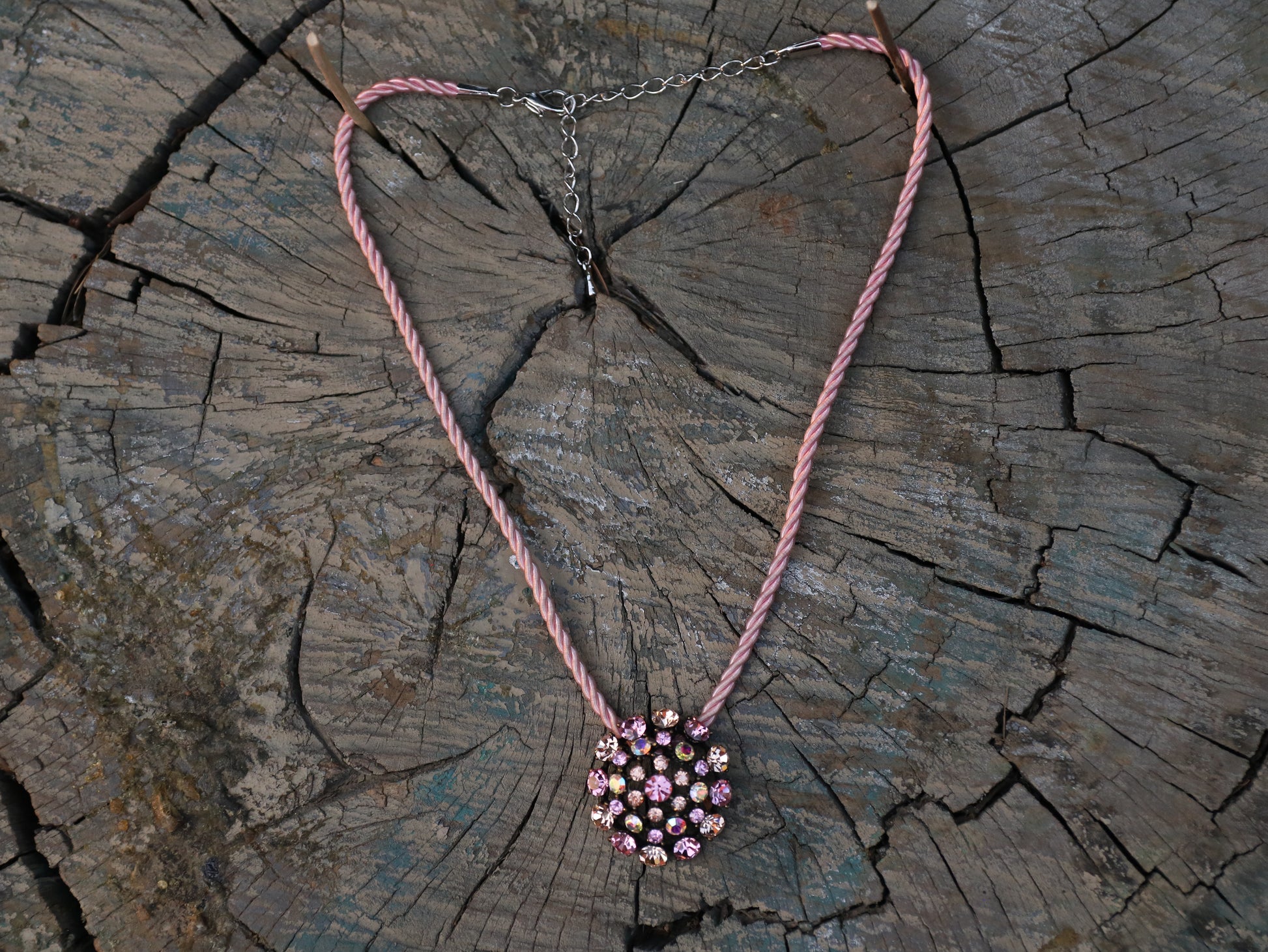 Sunset Star Choker is the simple pink necklace that every girl who loves Barbie needs. Made with repurposed brooch and pink twisted rope chain.
